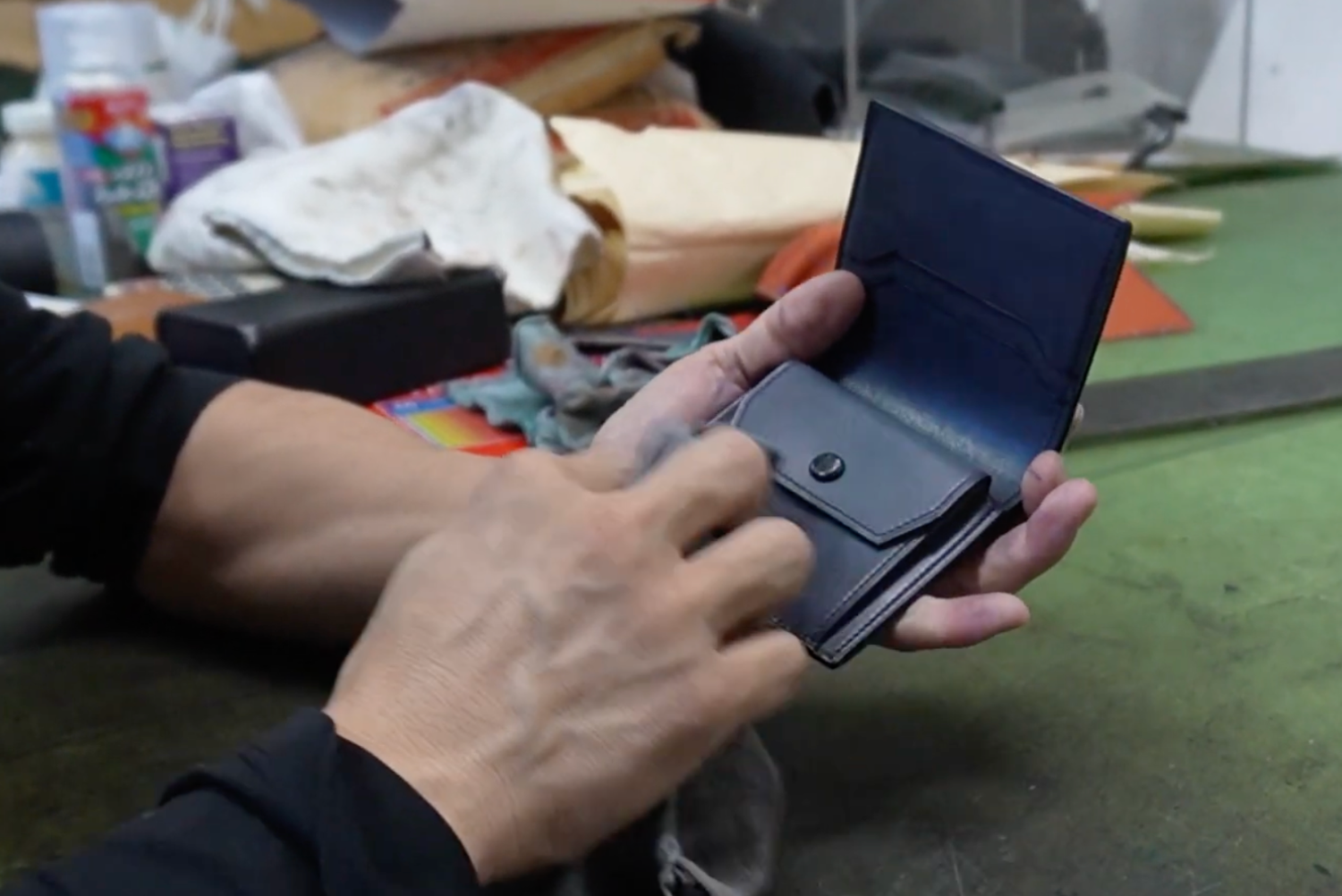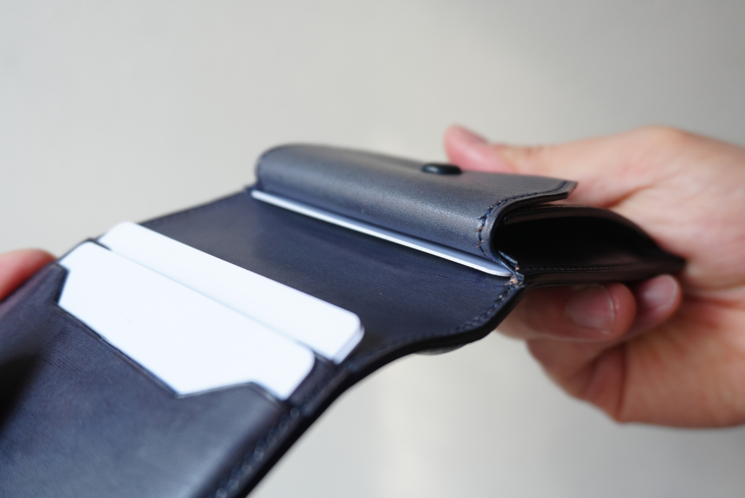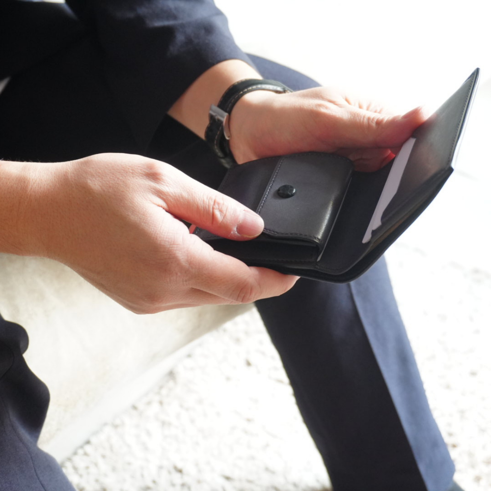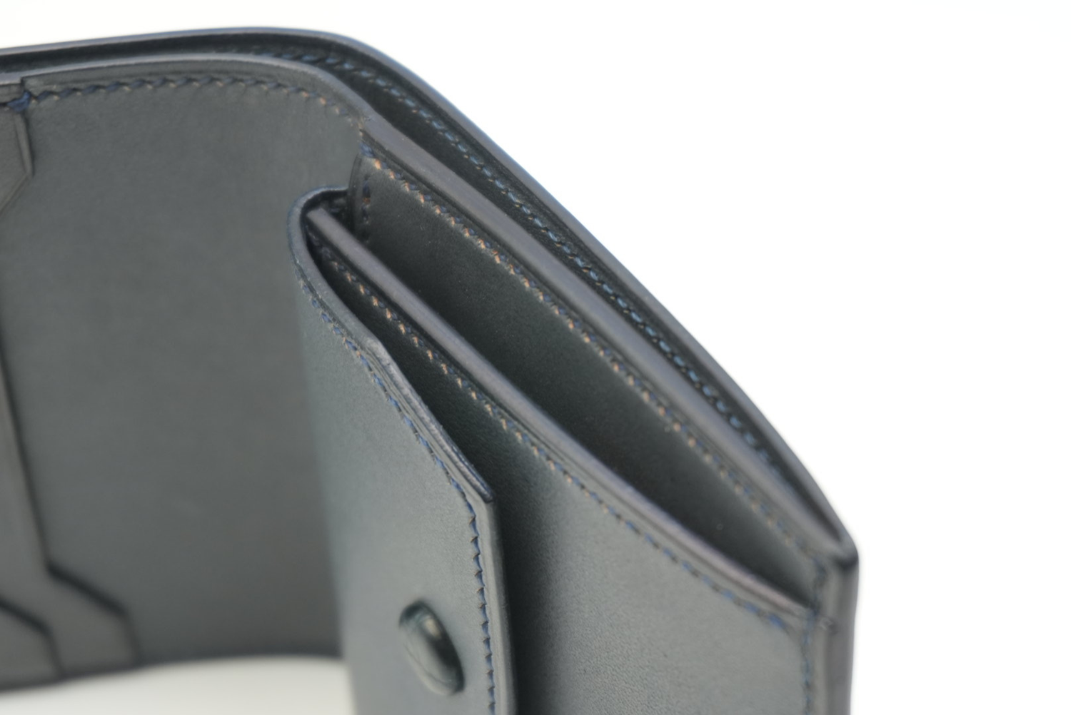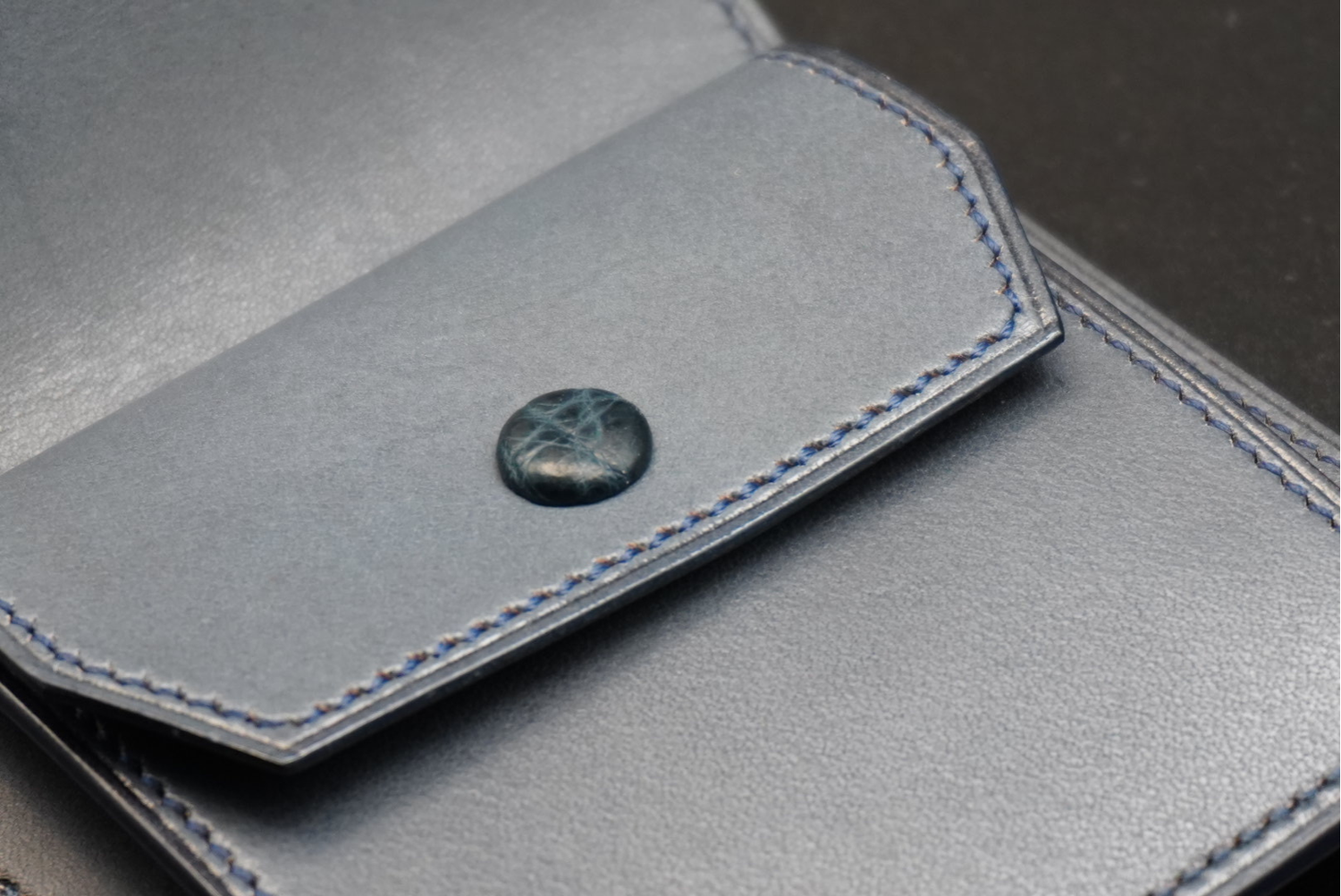 財布の輪郭を司る断面(コバ)は、熱を加えて引き締め、鏡面のような滑らかさになるまで何度も磨き上げています。思わず指先でなぞりたくなるしっとりとした質感と、工芸品のように整った美しさは、手にするたびに「本物」を所有する喜びを実感させてくれます。