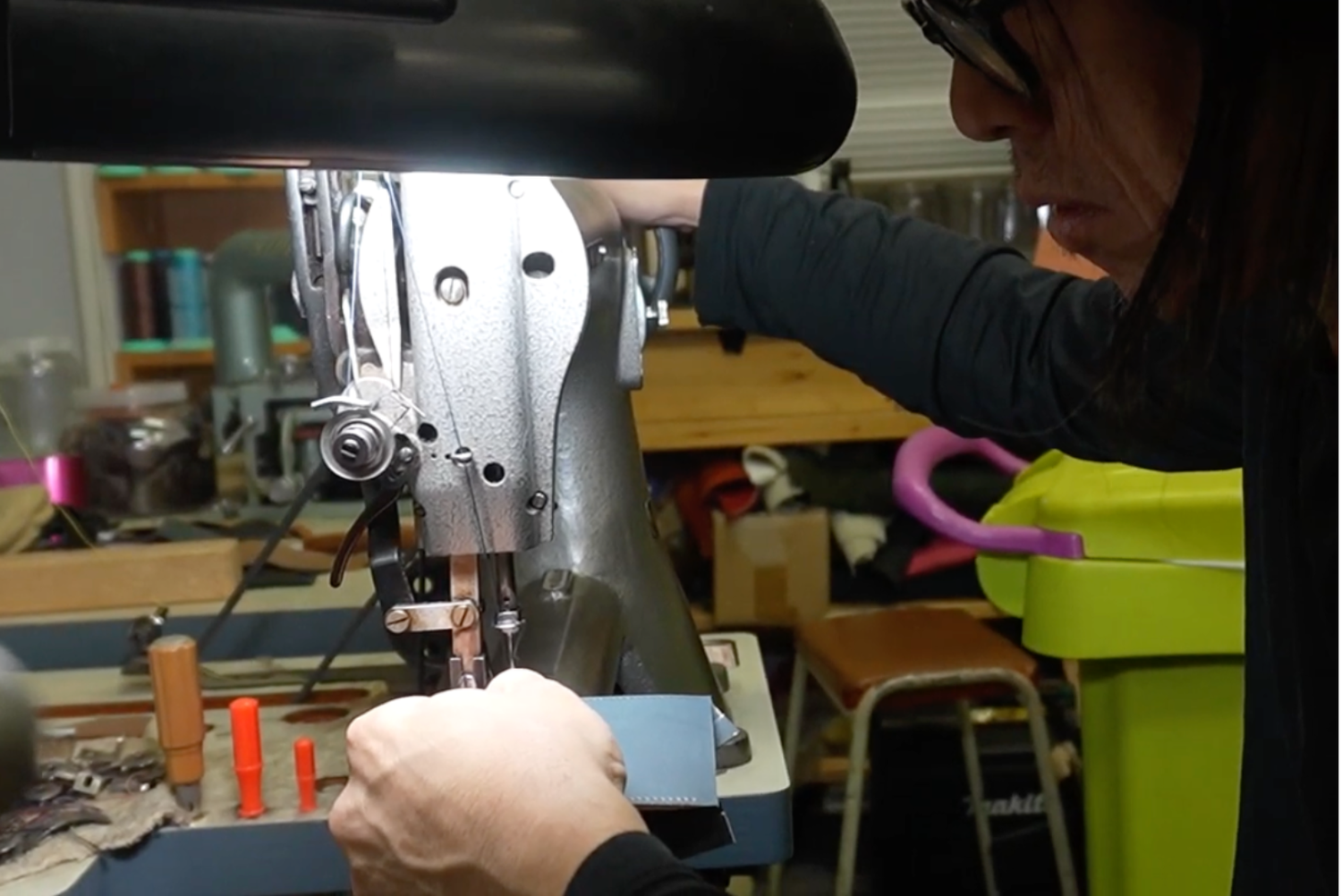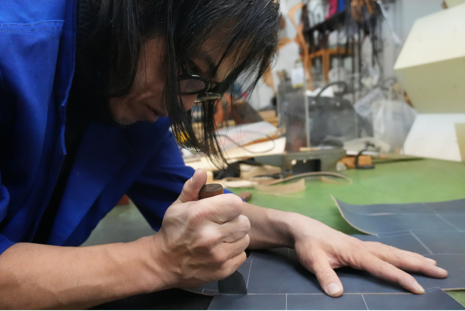 負荷のかかる縫製ラインには、専用の道具で溝を切り、糸を革の表面より低く沈める加工を施しています。これにより、摩擦による糸切れを物理的に防ぎ、長期間の使用に耐えうる堅牢性を備えました。